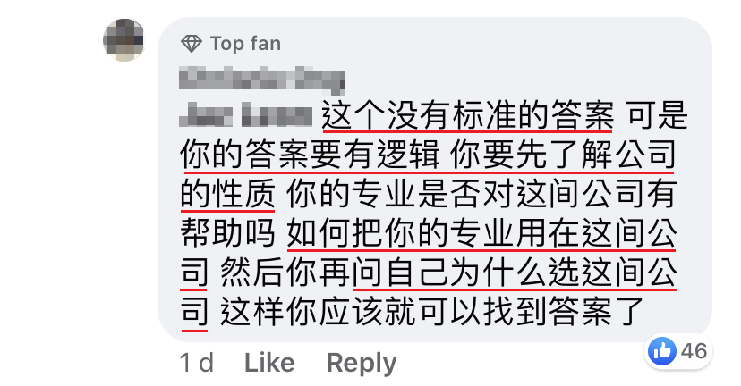 ▼ 对于「为什么选择我们的公司?」这个问题,大家建议的答复有这些!