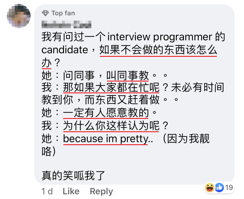 我公司算不上很大,但在Malaysia还是有一点地位,给出的条件也不差,所以我才会见识到这么多“人才”。