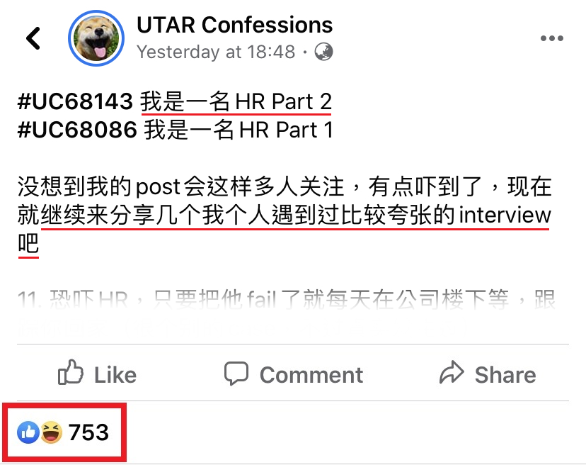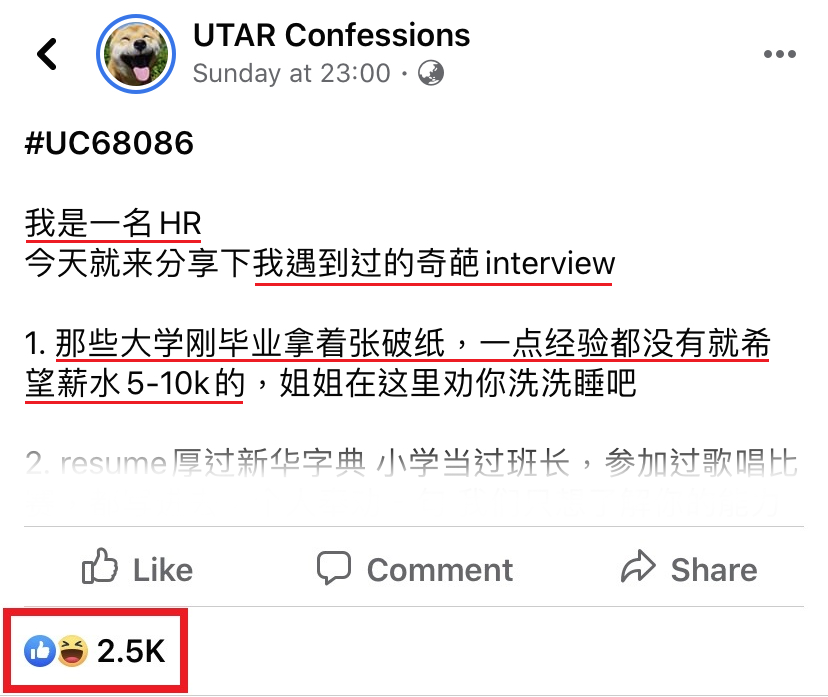 近日一名在人事部就职长达6年的大马网友,在 UTAR Confessions 投稿分享她遇过的17种奇葩面试,引发网友们的热烈回响和共鸣!