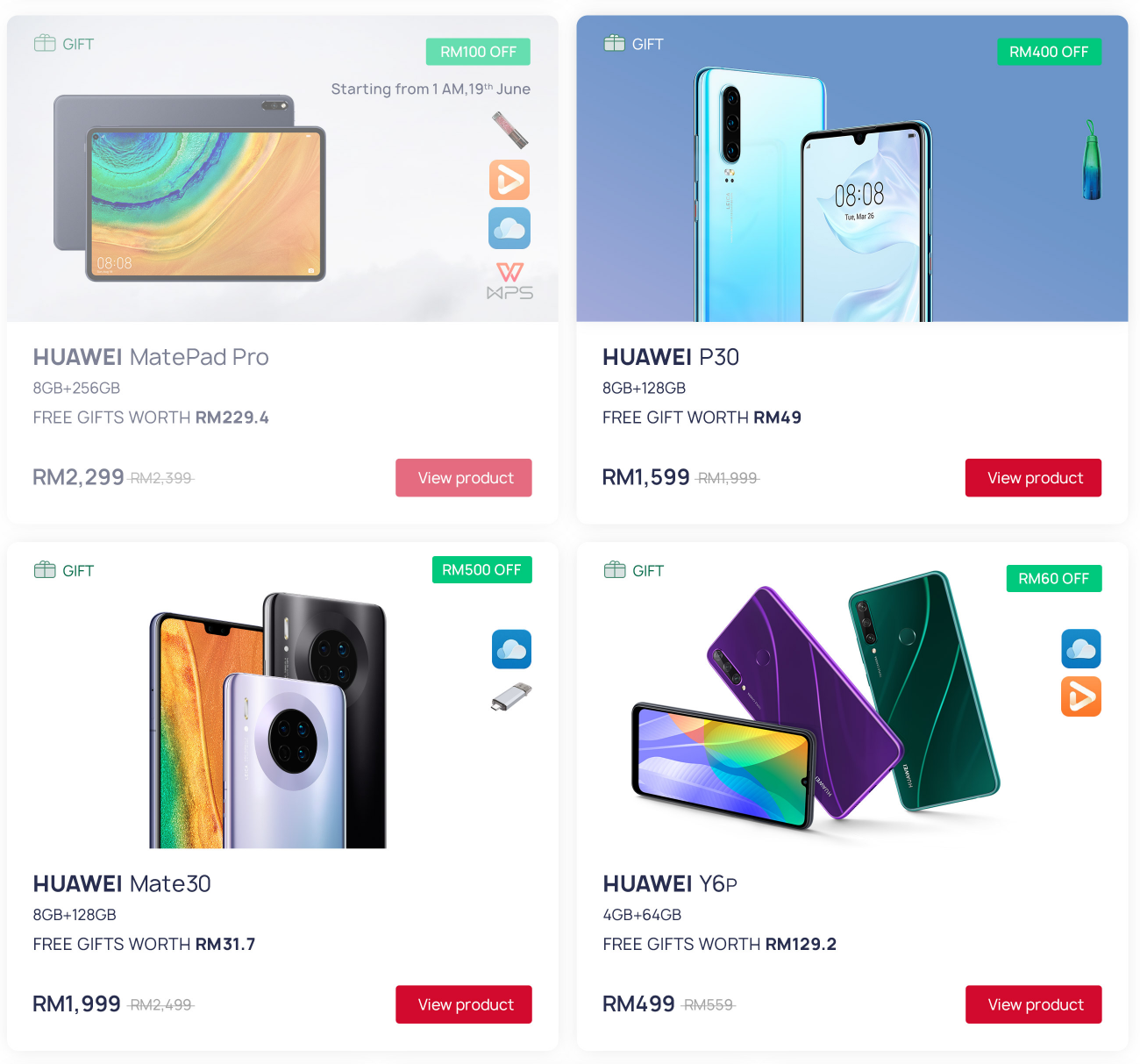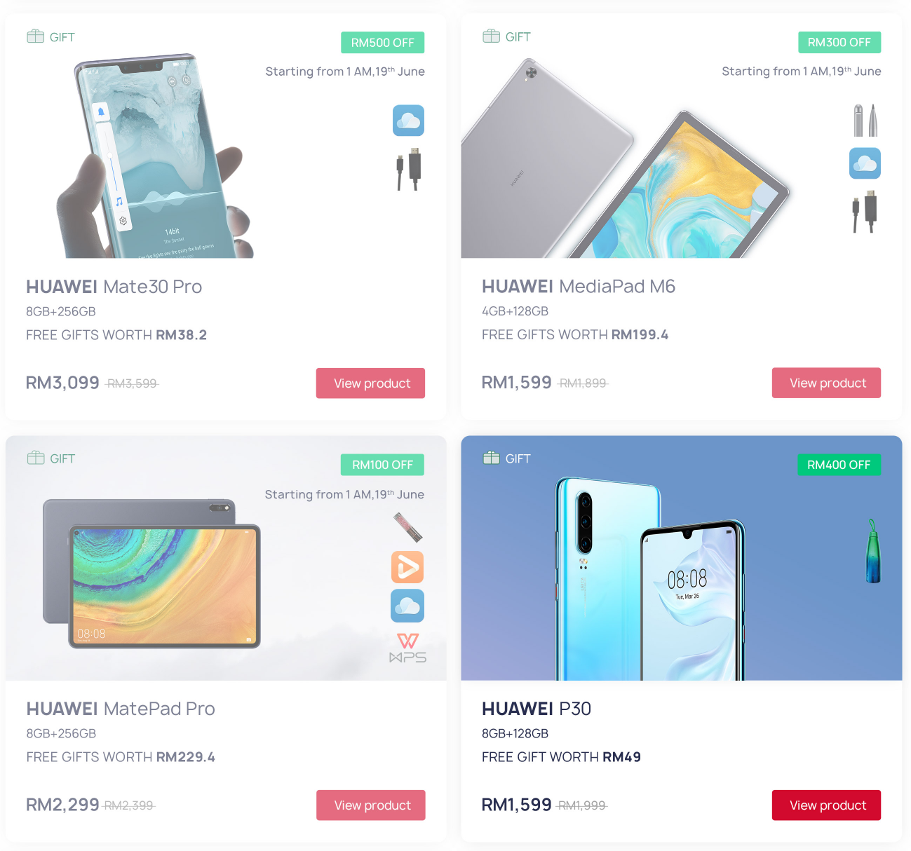这项优惠在6月19日(星期五),在 Huawei 官方网站推出限时大优惠!促销的商品中有智慧型手机、智能手表、平板电脑及无线耳机等都享有优惠折扣!