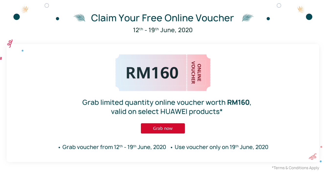 你可从即日起至6月19日,领取该优惠券。并在19号当天购买指定商品,同时你可兑换 RM160 优惠券啦!(也就是说你可省下RM160)