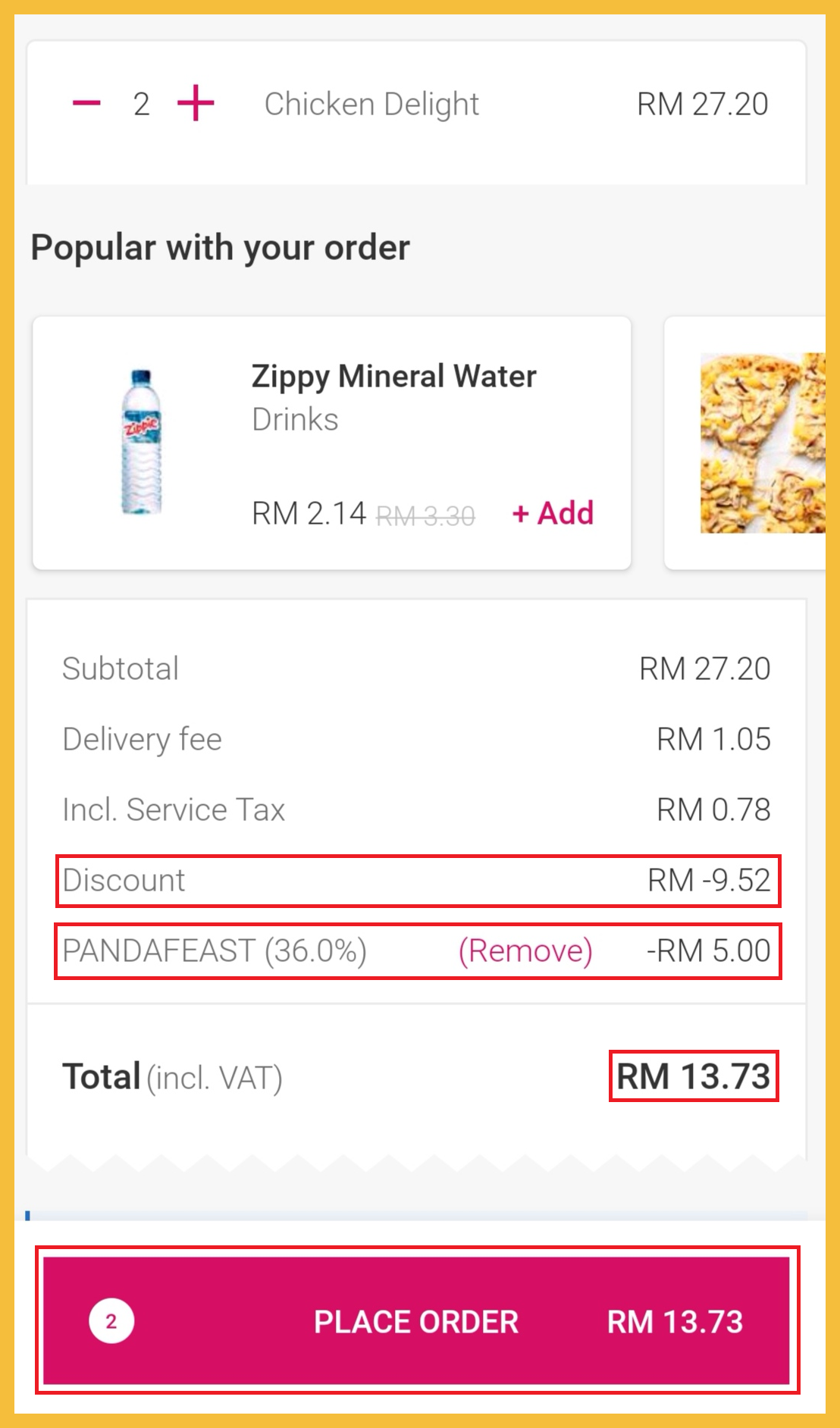※ 2份 Personal Pizza 原价 RM27.20 折扣35%+36%后,只需RM13.73!相等于一份 Pizza 只需RM6.86!