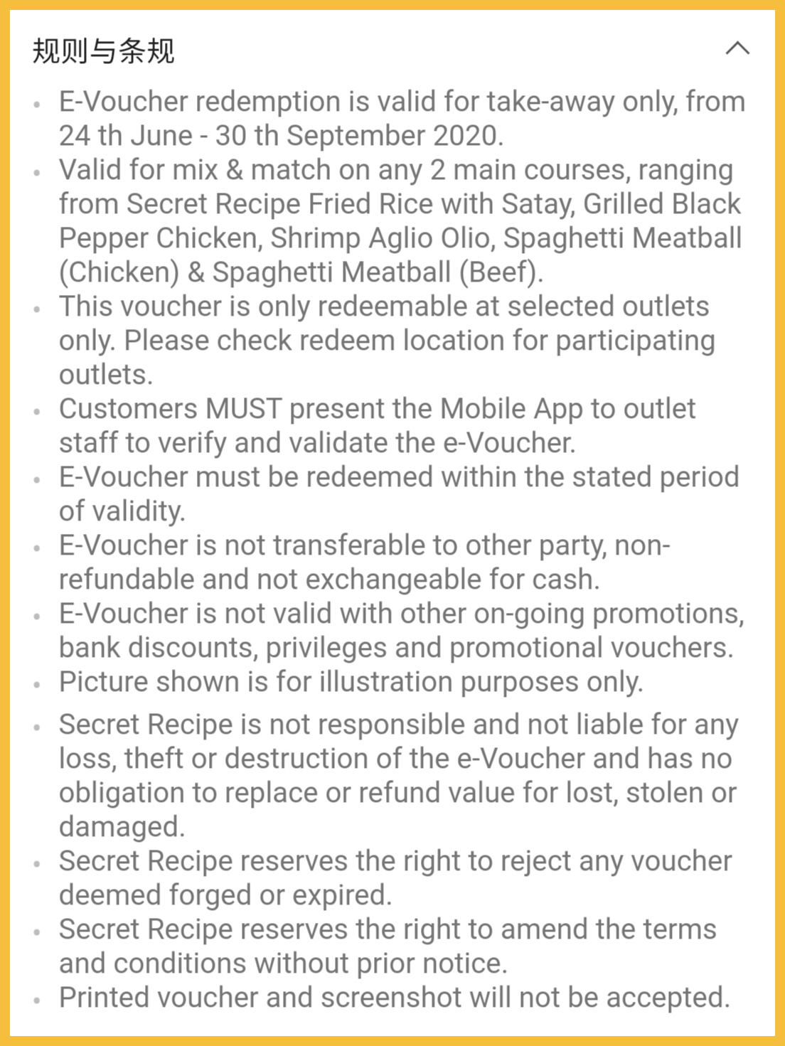 喜爱吃 Secret Recipe 美食的朋友,可趁现在大优惠,购买该优惠券啦!在截至日期之前,你想吃时就去兑换就行啦!