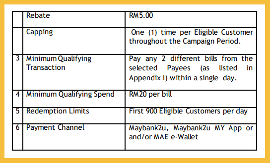 促销活动:使用 Maybank 缴付各种账单,可获得RM5现金回扣