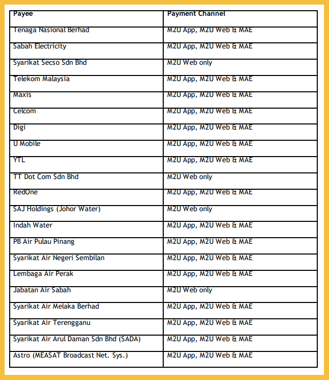 从即日起,只要你通过 Maybank 的 Maybank 2u 或 MAE 缴付2张不同的账单,就可享有 RM5 现金回扣。