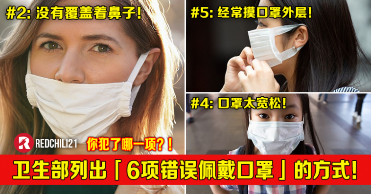 你是否有正确的佩戴口罩?!大马卫生部(Kementerian Kesihatan Malaysia)列出民众佩戴口罩所犯下的6大错误!其中包括口罩只遮嘴不遮鼻、口罩拉到下巴等。