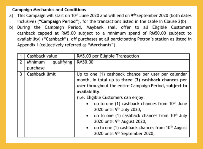 - 10 Aug 至 9 Sept 2020期间——可获得1次(RM5)现金回扣(在优惠期间,顾客可获得最多3次现金回扣)