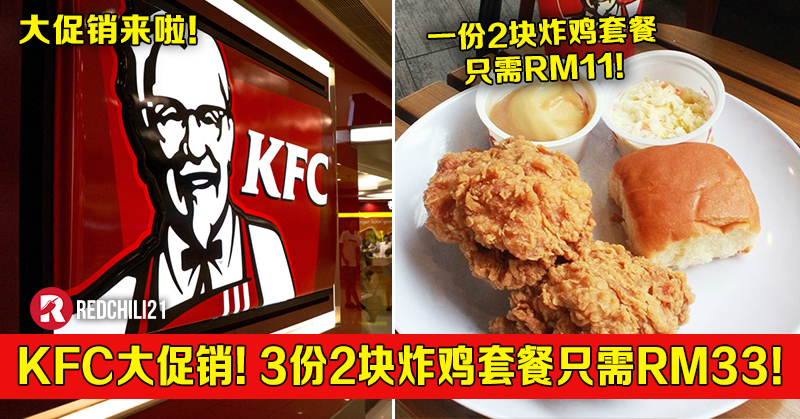 ③ KFC —— 推出3份2块炸鸡套餐只需RM33