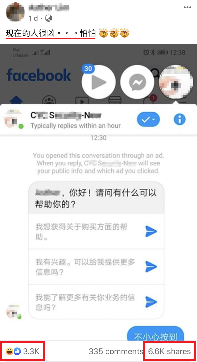近来一名大马网友在面子书上传一张手机截图,笑翻许多网民!该帖文在短短1天内,就超过6千人分享、3千人点赞!