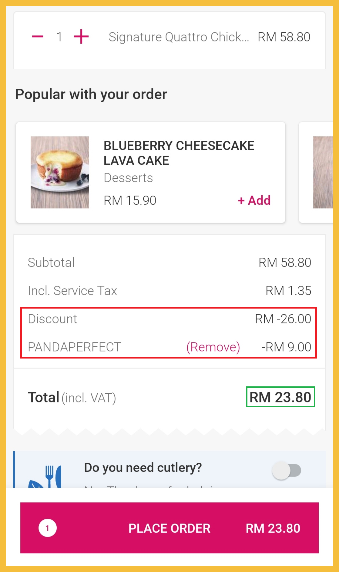 ▼ 步骤5:一份 XL Signature Quattro Chicken (Classic)原价RM58.80,折扣后只需RM23.80,让你省下RM35!