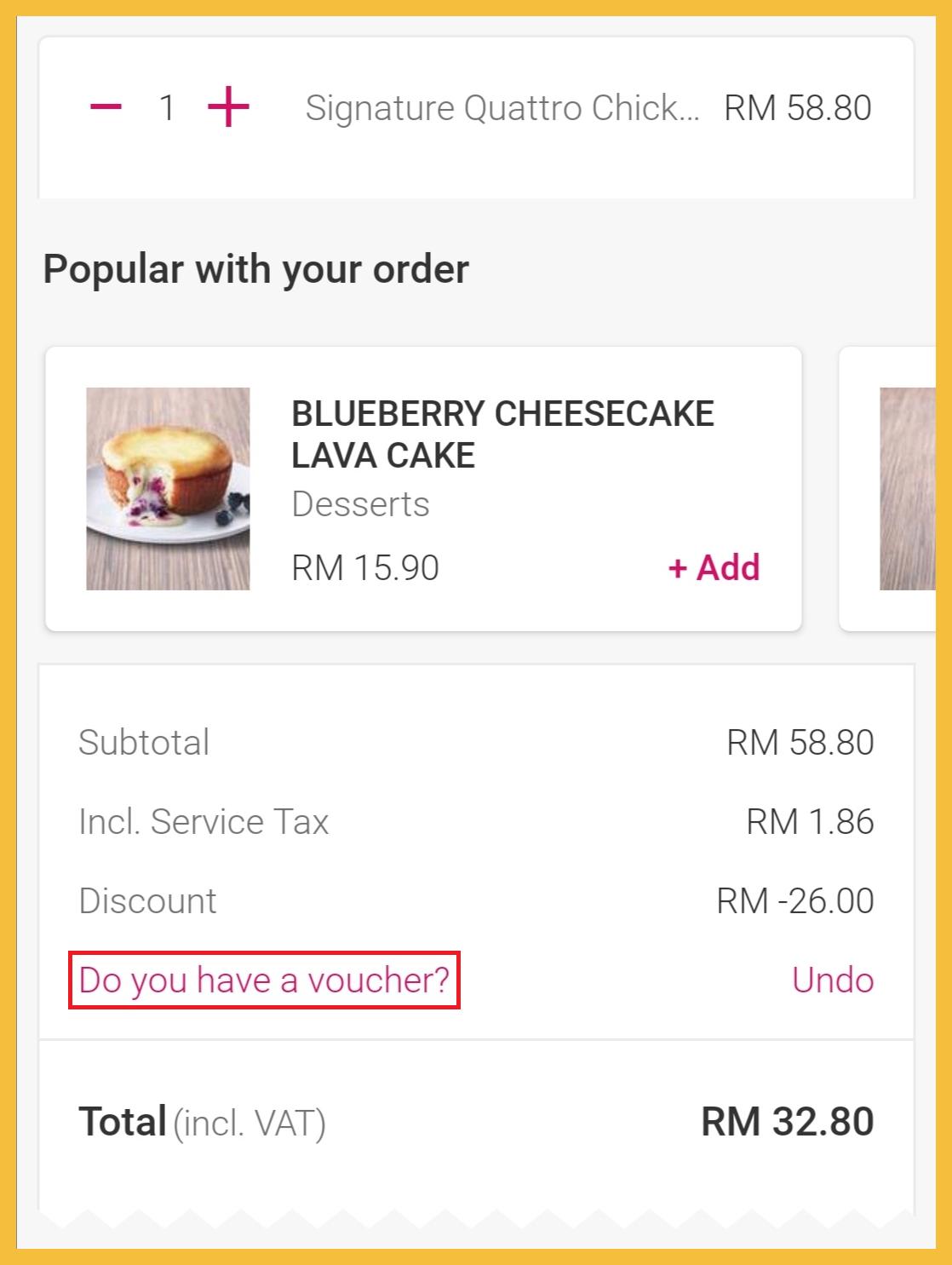 ※ 页面中显示出折扣 RM26,但先别急着下单,还有额外折扣给你哦!