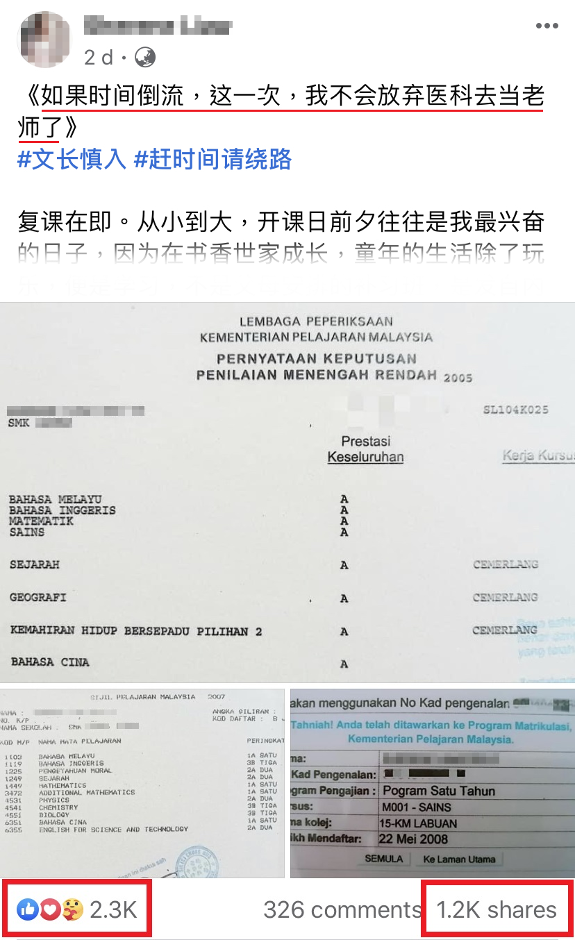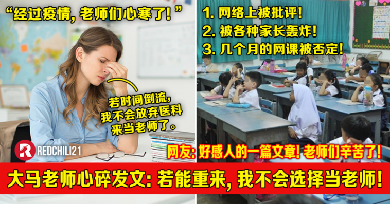 近日一名大马老师就在面子书发文分享自己的感受:如果时间能够倒流,我当初就不会为了当老师而放弃医科。网友们读完以后都被感动了!