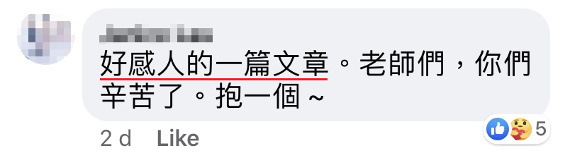 开课后,前线的老师们需要的,不是好像政府提供给前线医生的额外津贴、不是家长群众的吹捧、不是学生的拥戴,只是需要大家一点点感恩的心,再附加一点点的同理及信任,仅此而已。