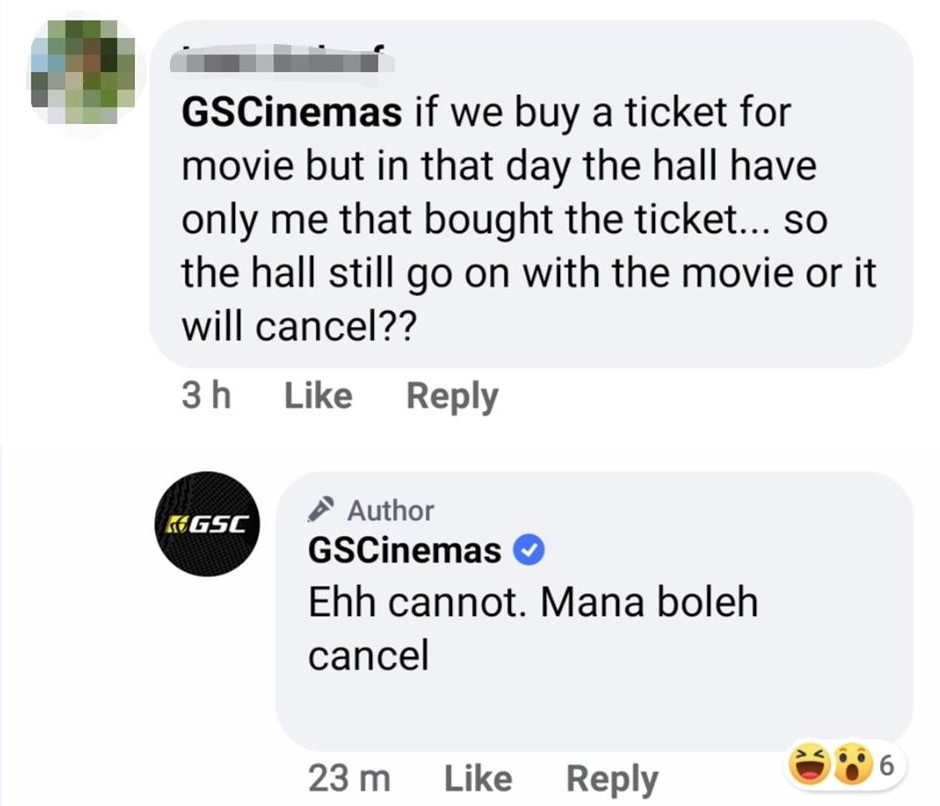 ▼「如果那天那场电影只有我一个人买票,那戏院还会照常播放电影吗?还是会取消?」
