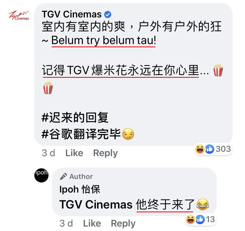 不过打广告的不是只有他们!早前 《Ipoh 怡保》 面子书专页发文宣传有关全马首家露天电影院开张,GSC 小编和 MBO 小编纷纷来“踩场”!没想到后续还有更精彩的故事!