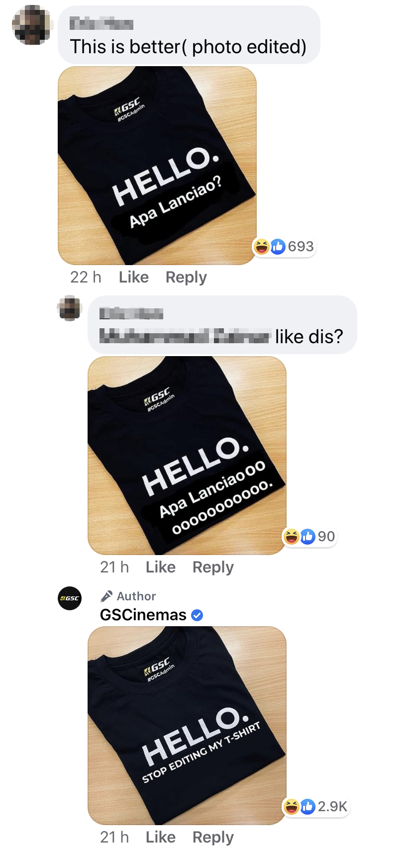 ▼ GSC日前推出“Hello Cannot”的 T-shirt深受网友们的喜爱,甚至卖到断货!同时有网友借机尝试售卖不是来自官方的同款 T-shirt。小编表示 Beh tahan 了!