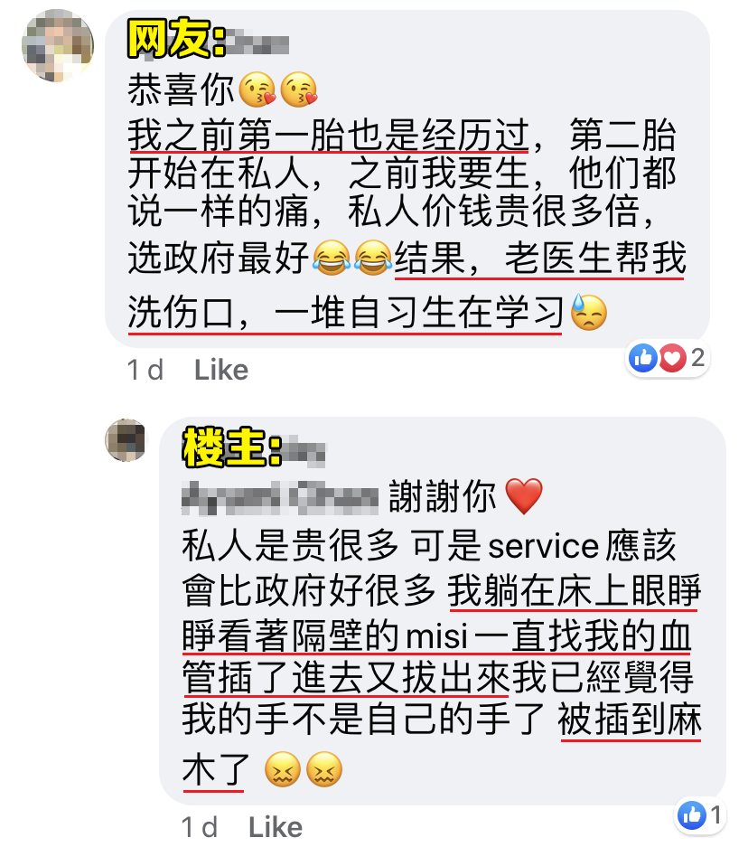 不过这位新生妈咪就用自己的亲身经历来说:在政府医院生孩子都是运气!运气好就一切顺利,运气不好的话只能自求多福。