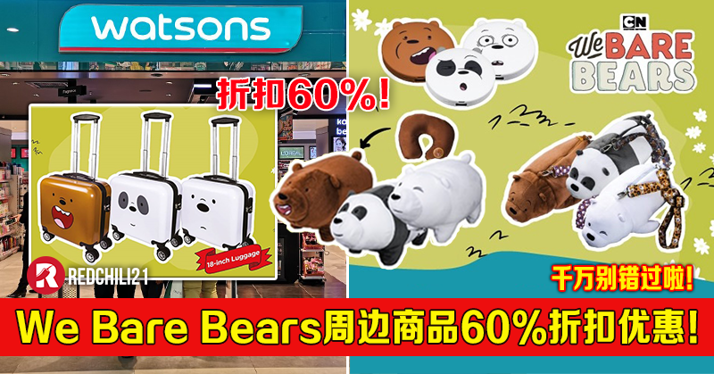 促销活动:Watson 推出 We Bare Bears 周边商品,可折扣60%!