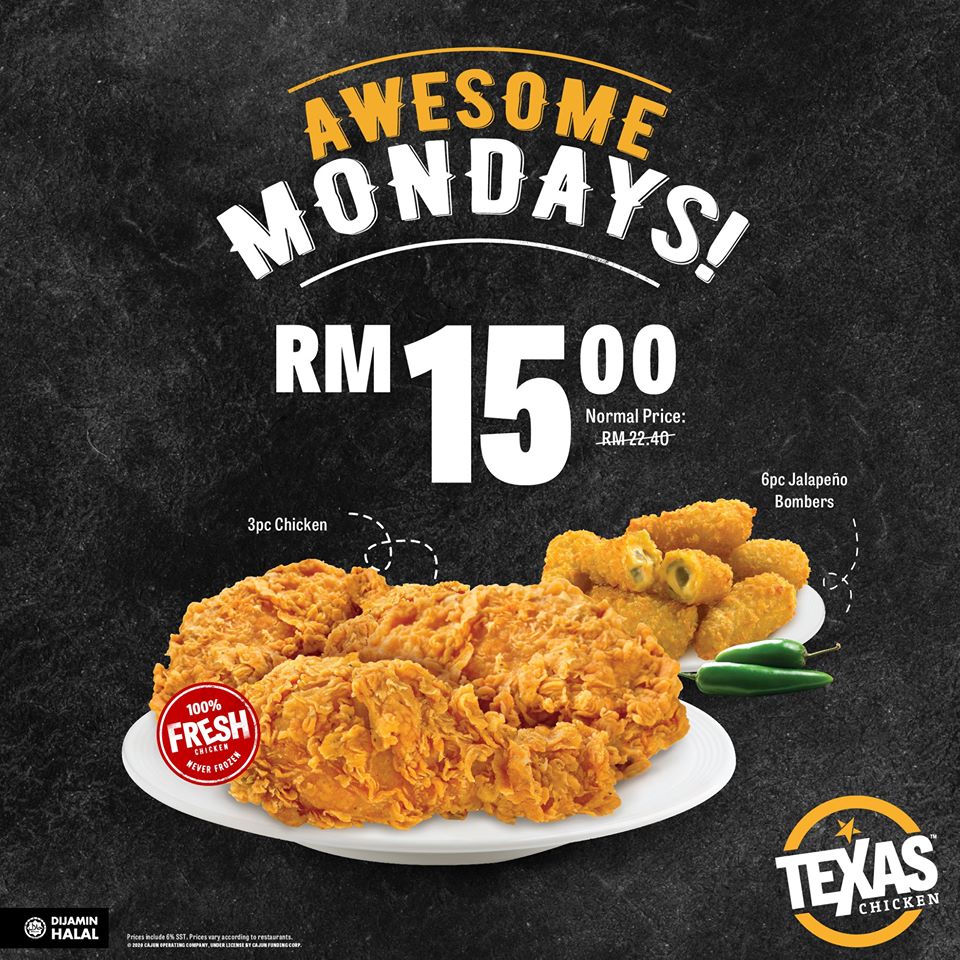 ③ Texas Chicken —— 每逢星期一推出炸鸡套餐只需RM15
