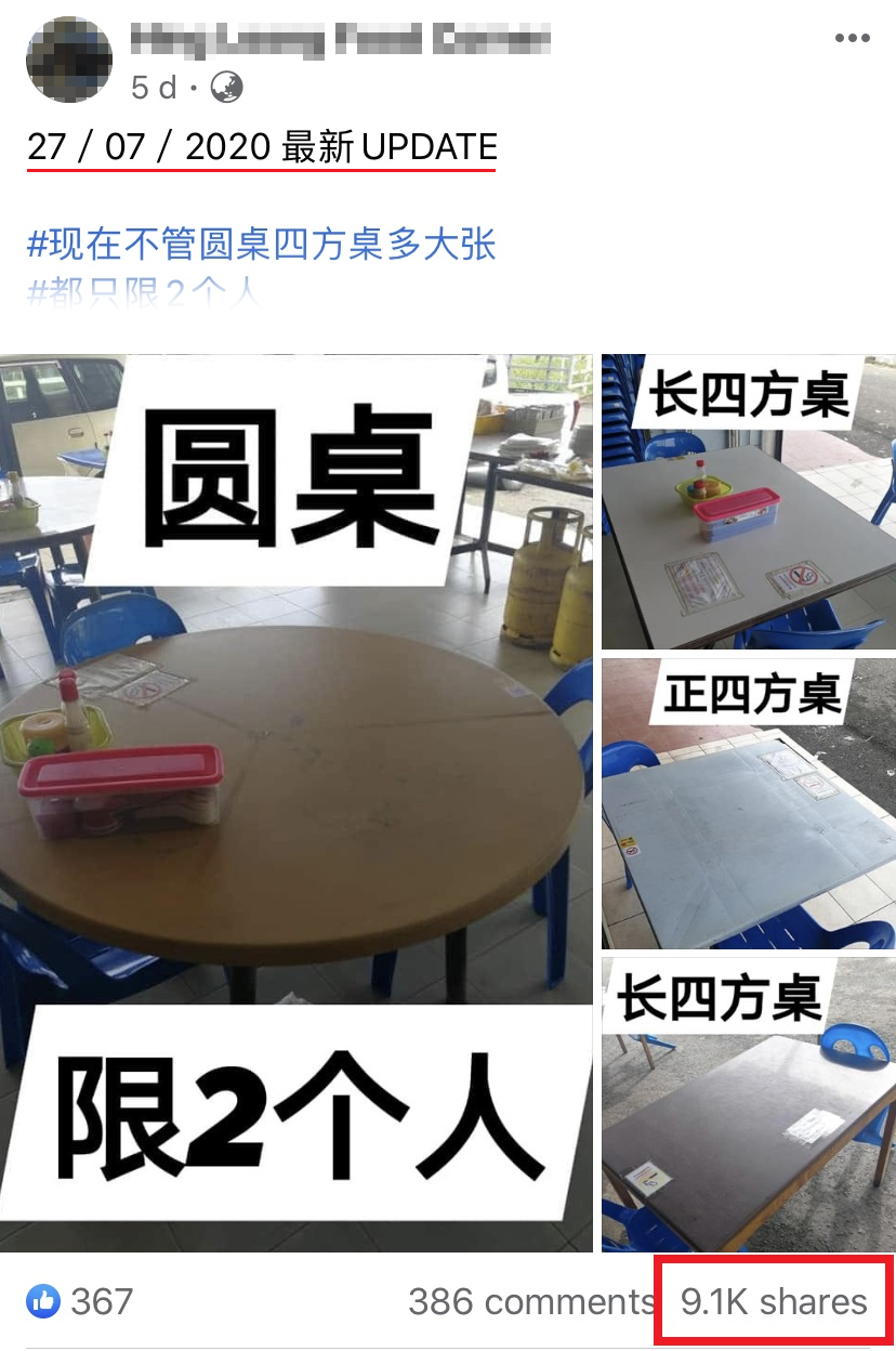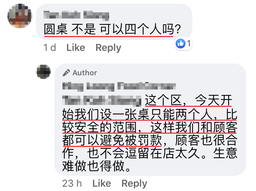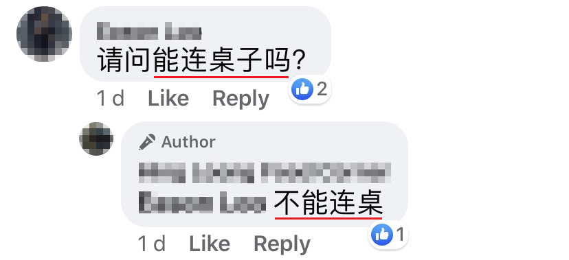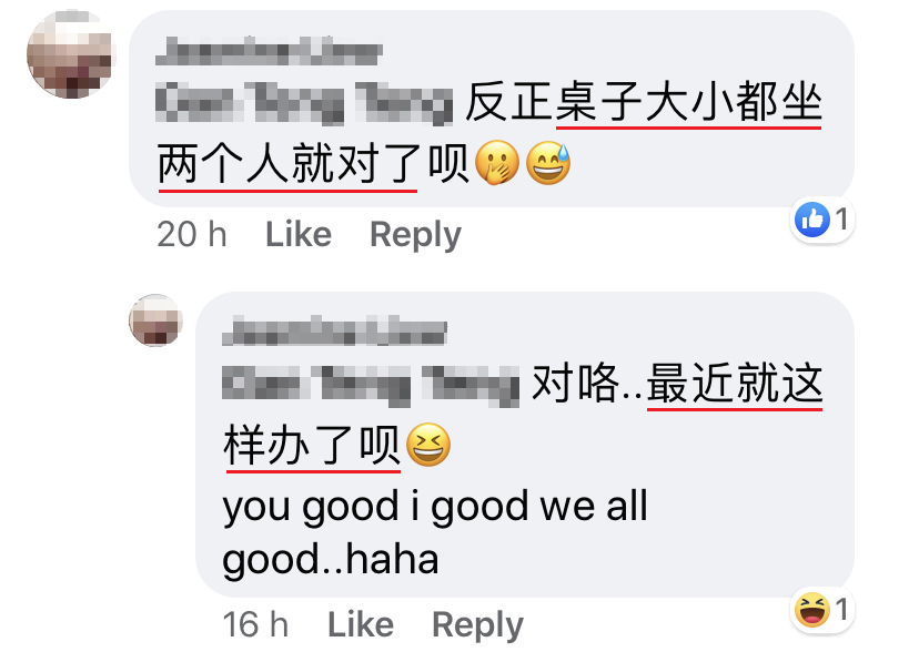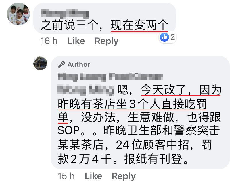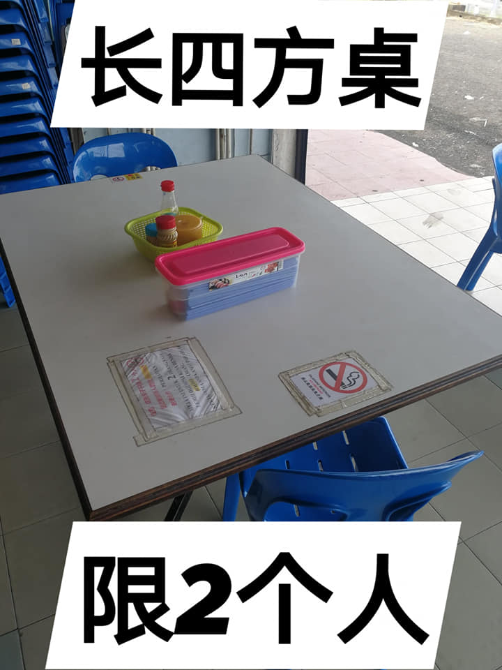 除了这些,餐厅内的桌子限制人数也有所更改!据以下这家咖啡店的面子书专页透露,现在不管是圆桌或四方桌,都只能坐2位客人!