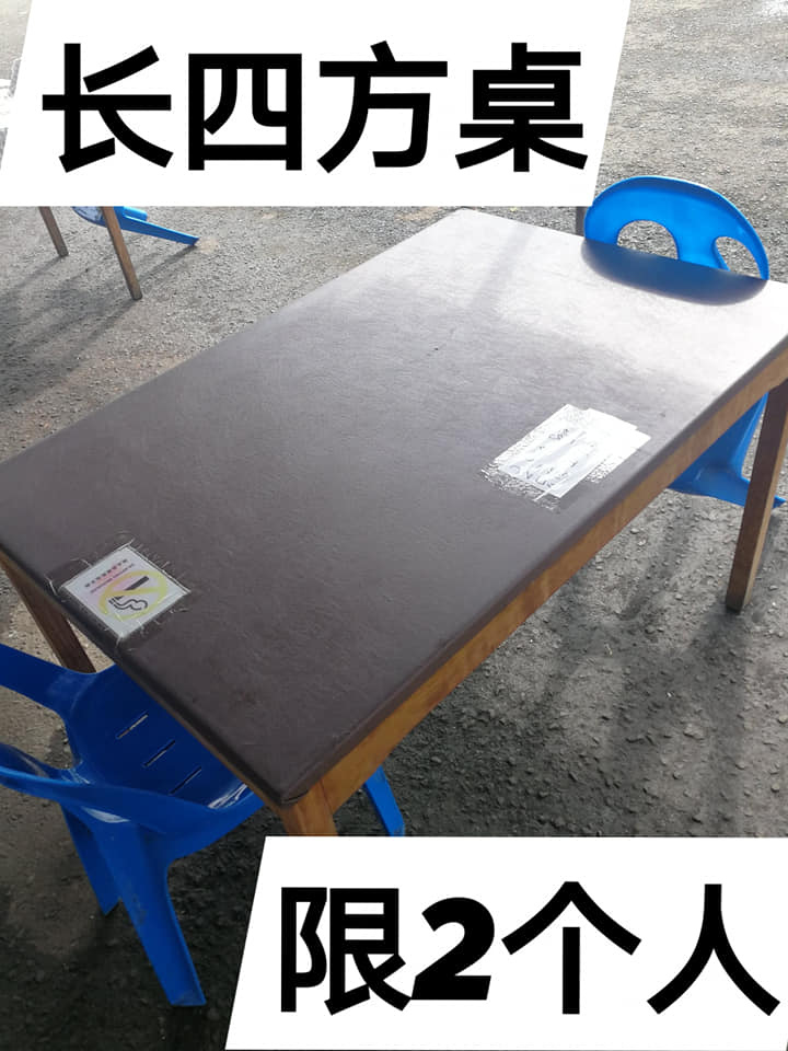 今天开始,请各位顾客必须遵守每张桌子限定的位置,必须量体温、书写全名和联络号码。