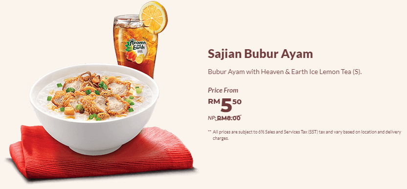 套餐包括:1碗鸡粥 + 1杯 Heaven&Earth Ice Lemon Tea(S)