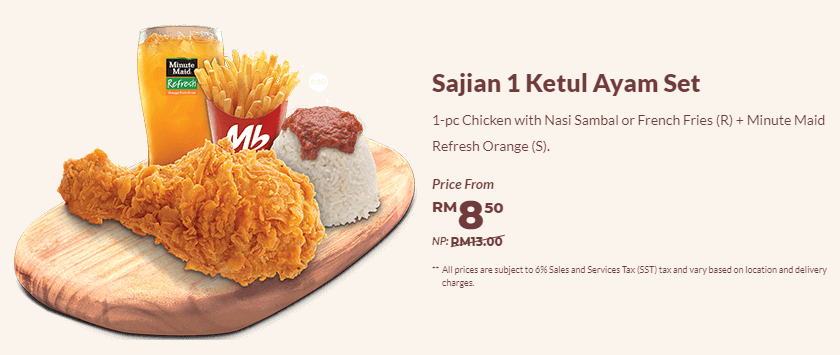 ▼ Sajian 1 Ketul Ayam 套餐——只需RM8.50
