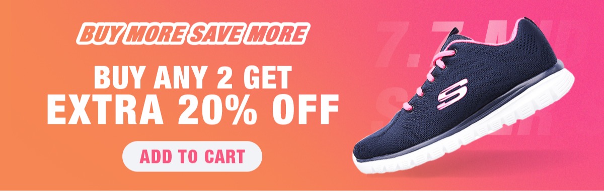 若你在这次优惠中购买2双鞋子,可再额外折扣20%!同时领取折扣券又可折扣高达 RM20!