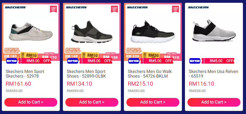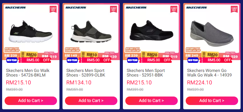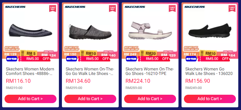 ▼ 在 7 July 2020 的 12am 至 2am 时段购买鞋子,可额外折扣10%!