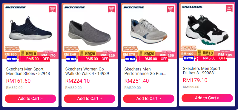 ▼ 在 7 July 2020 的 12am 至 2am 时段购买鞋子,可额外折扣10%!