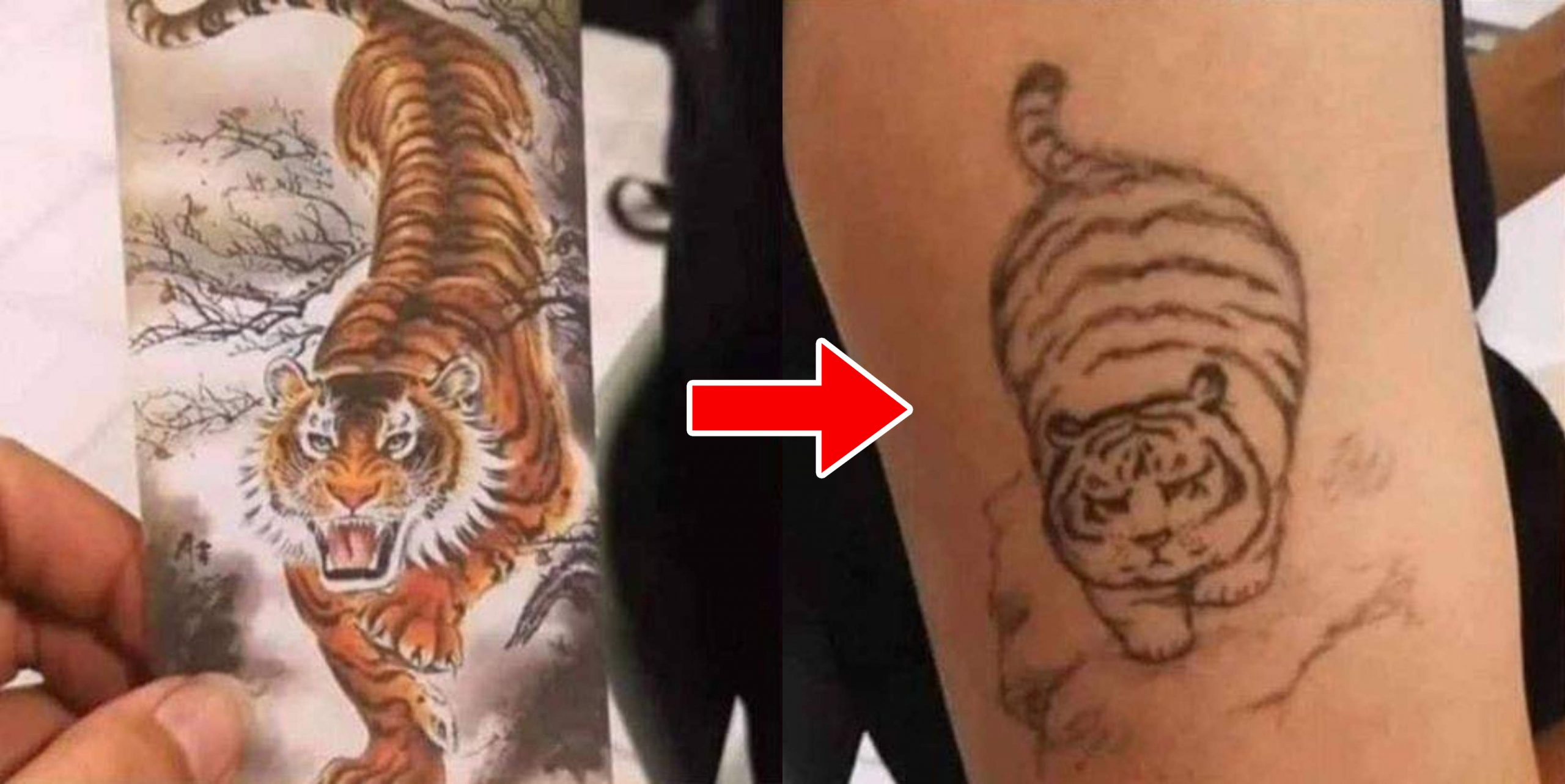 从照片里可以看到,男子拿着一张「猛虎」的照片来找纹身师,要求纹身师为他纹出一模一样的图案。没想到纹身师却“另有想法”,把说好的「猛虎」变成又肥又可爱的「小萌虎」!男子看到成品时都哭笑不得。