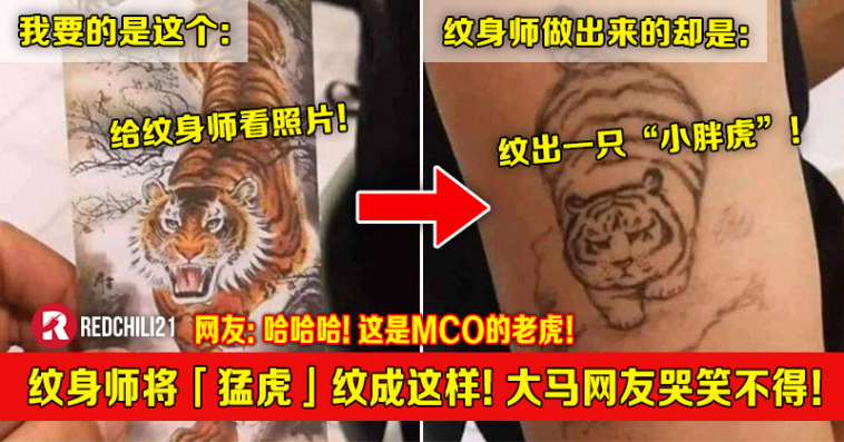 纹身师竟将「猛虎」纹成这样!大马网友哭笑不得!网友:哈哈哈!这是MCO的老虎!