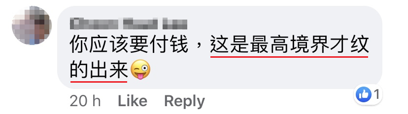 原PO无奈地写道:「纹成这样… 我可以不付钱吗?」
