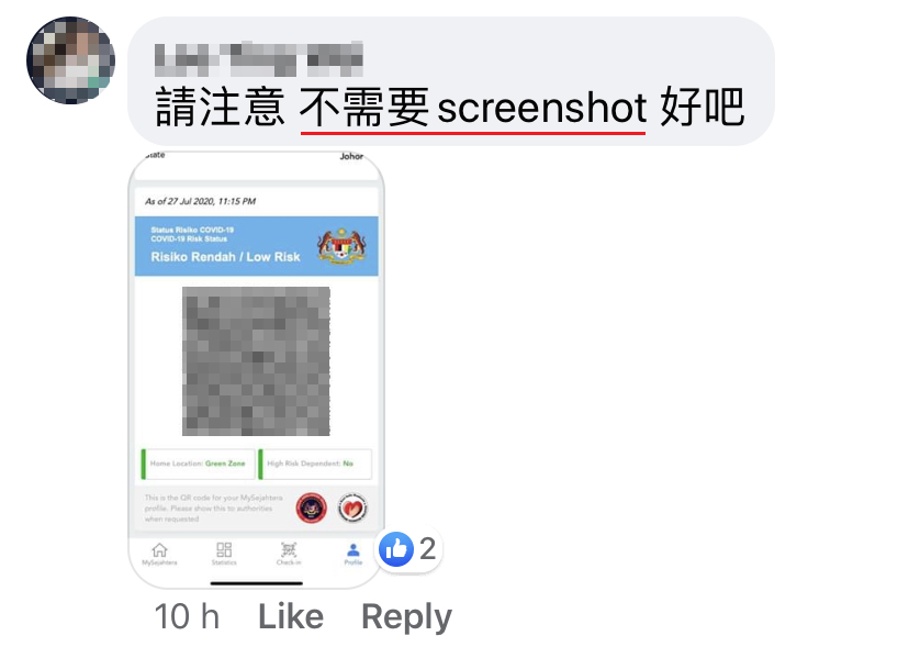 昨天网络上疯传一则消息:MySejahtera App 的用户们除了进行扫描登记,还需要将当时的扫描画面截图并保存下来,否则遇到警方突击检查的时候就会遭罚款RM1000!