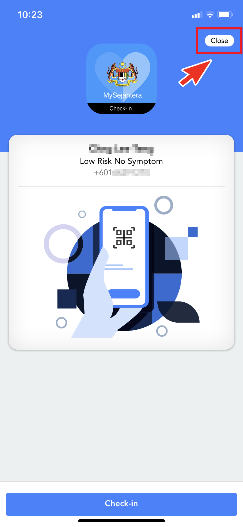 ▼ Step 1:已注册 MySejahtera App 的用户们只需打开手机里的 MySejahtera App,然后点击右上角的“Close”。