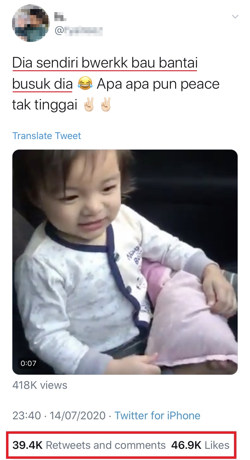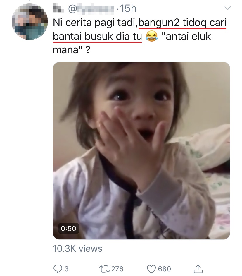 近日社交媒体上流传一段超可爱的视频,一名大马男子将女儿「拼命保护“臭臭”」的视频上传在 Twitter,短短2天内就多达46,000人按赞以及将近4万人转发和留言!