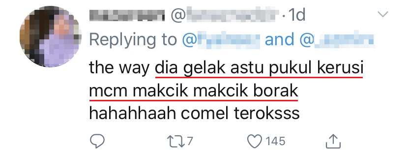 ▼「她笑到拍打椅子的模样好像 aunty aunty 聊天的样子!」