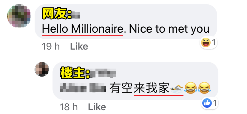 ▼ 网友调侃地说:「哈咯,百万富翁!」