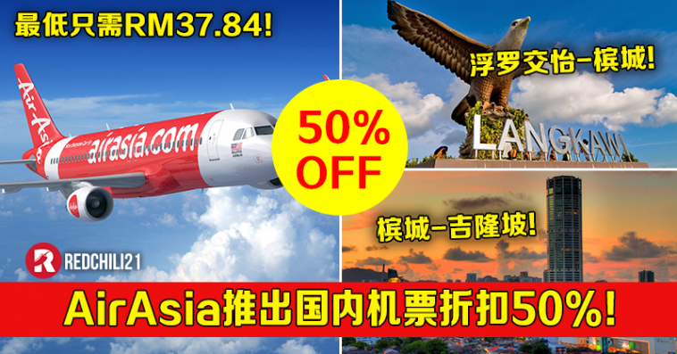 AirAsia推出国内机票折扣50%!最低只需RM37.84!