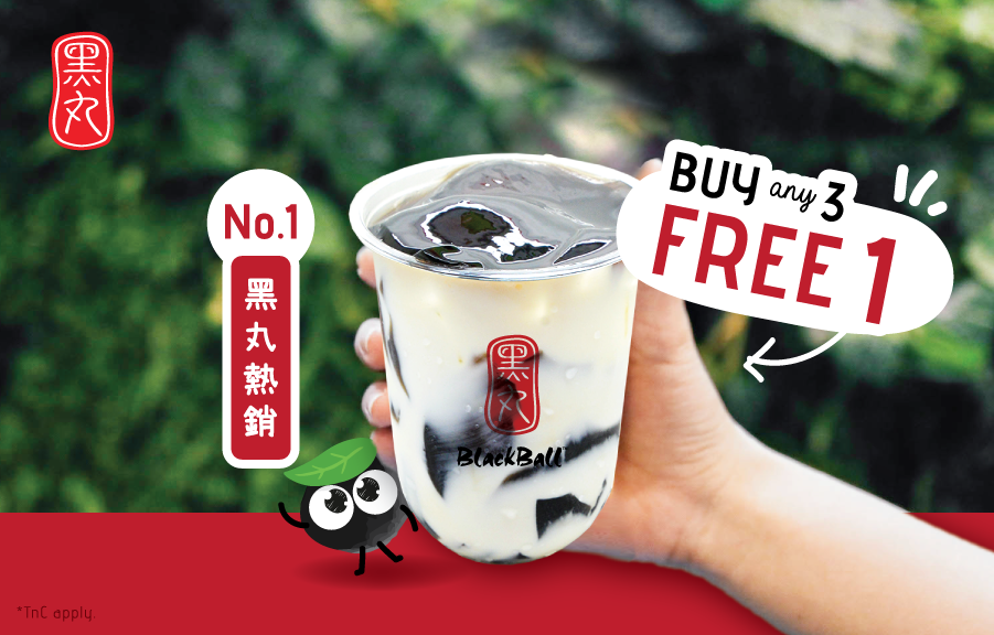 促销活动:BlackBall —— 购买3种甜品或饮料,免费送出一杯鲜奶仙草冻饮!