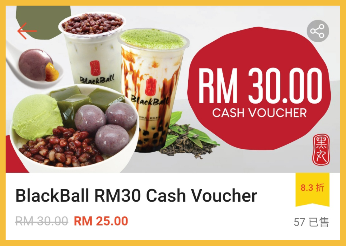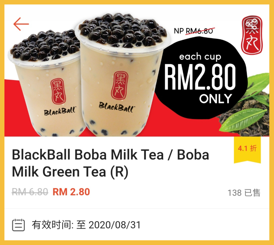 这次 BlackBall 与网购物平台 Shopee 推出超值优惠券,甜品饮料最低只需RM2.80!