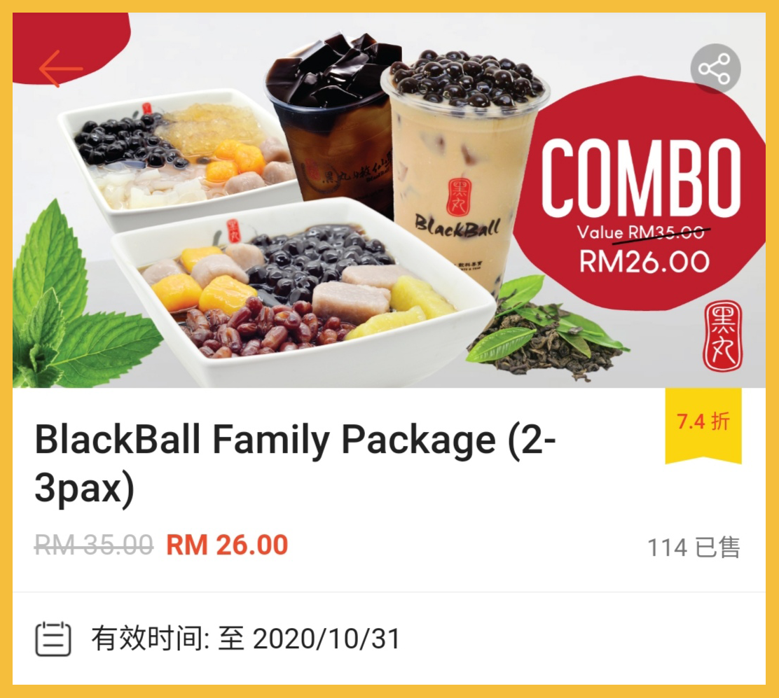 ▼③ BlackBall Family Package(2-3pax)RM35 优惠券 —— 只需RM26