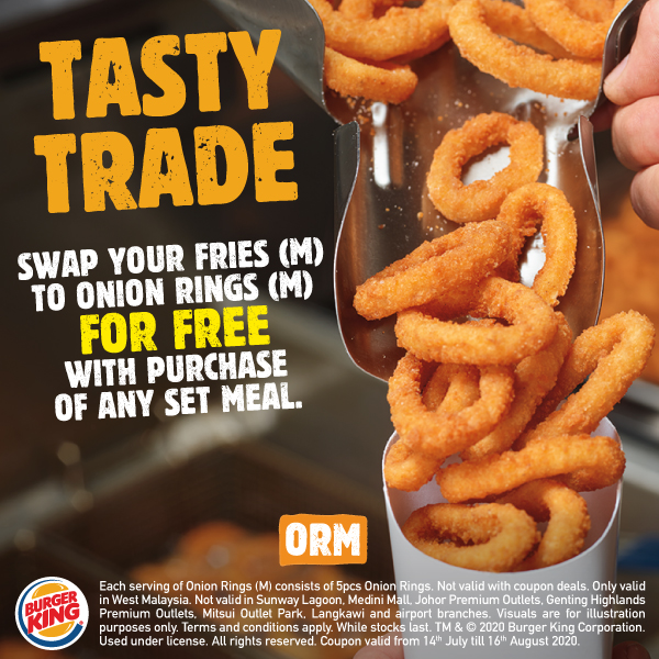 想吃便宜的汉堡吗?!如今大马 Burger King 推出【7月份】超值优惠,Whopper 汉堡套餐只需RM5.90!还免费一份Onion Ring 给大家吃!