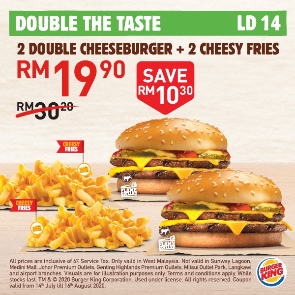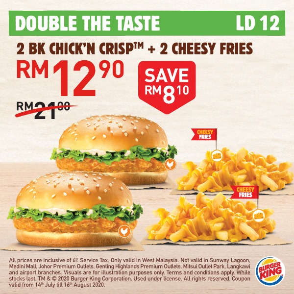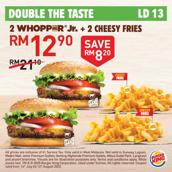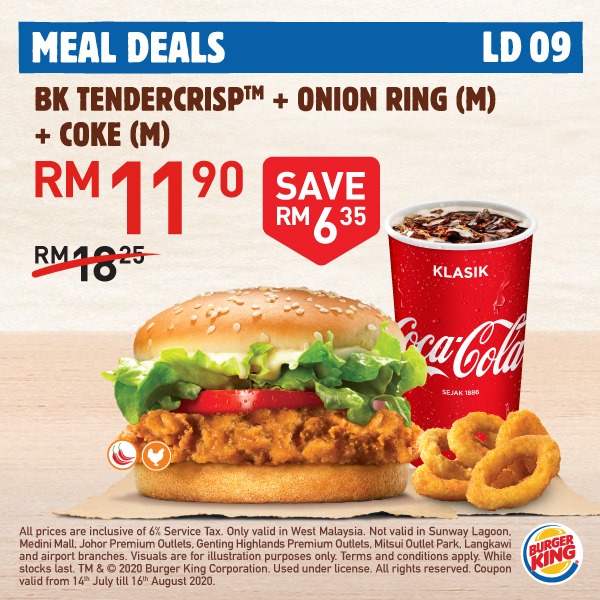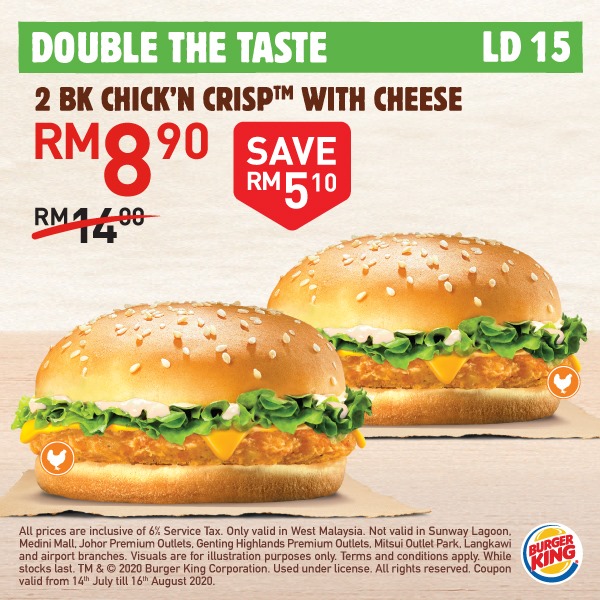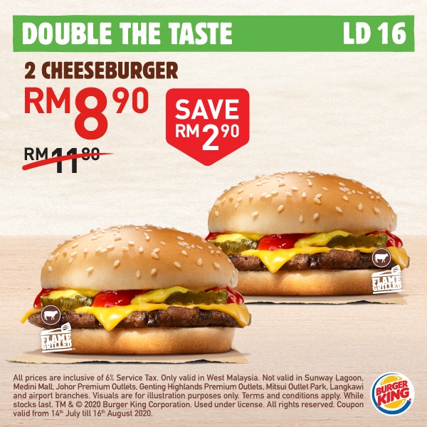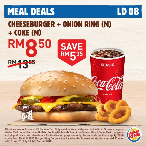 大马 Burger King 再次推出「20个超值优惠券」给大家!Whopper 汉堡套餐只需RM5.90,还Free Onion Ring给你吃哦!