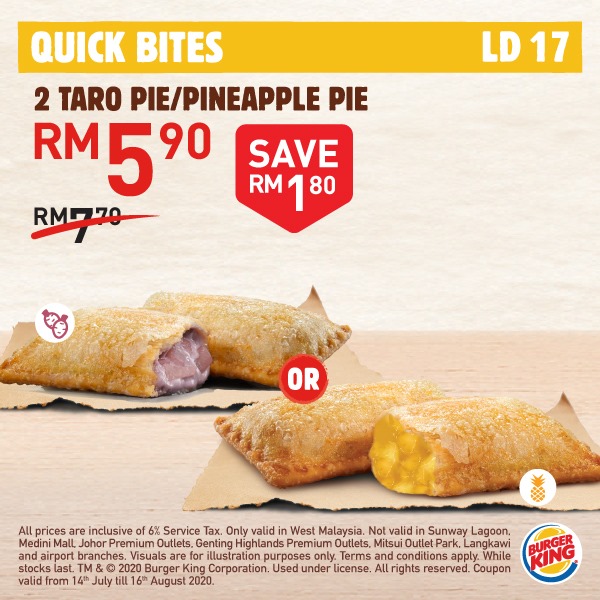 各种口味的汉堡套餐、鸡肉块及2种口味的派都在这次优惠中!喜欢吃 Burger King 汉堡的朋友,赶快下载电子券,到指定分行购买美食吧!