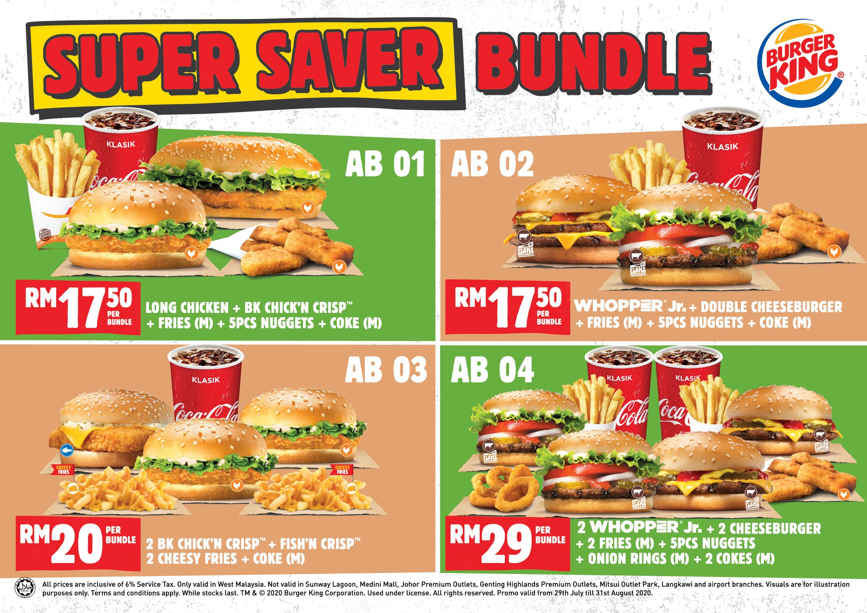 促销活动:大马Burger King —— 【Super Saver Bundle】套餐!最低只需RM17.50!