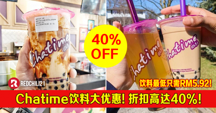 喜爱喝 Chatime 饮品的朋友,如今又有超值优惠啦!折扣高达40%!