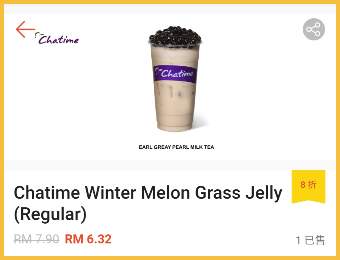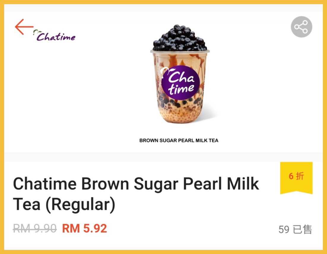 ▼ ① Chatime Brown Sugar Pearl Milk(Regular) —— 只需RM5.92