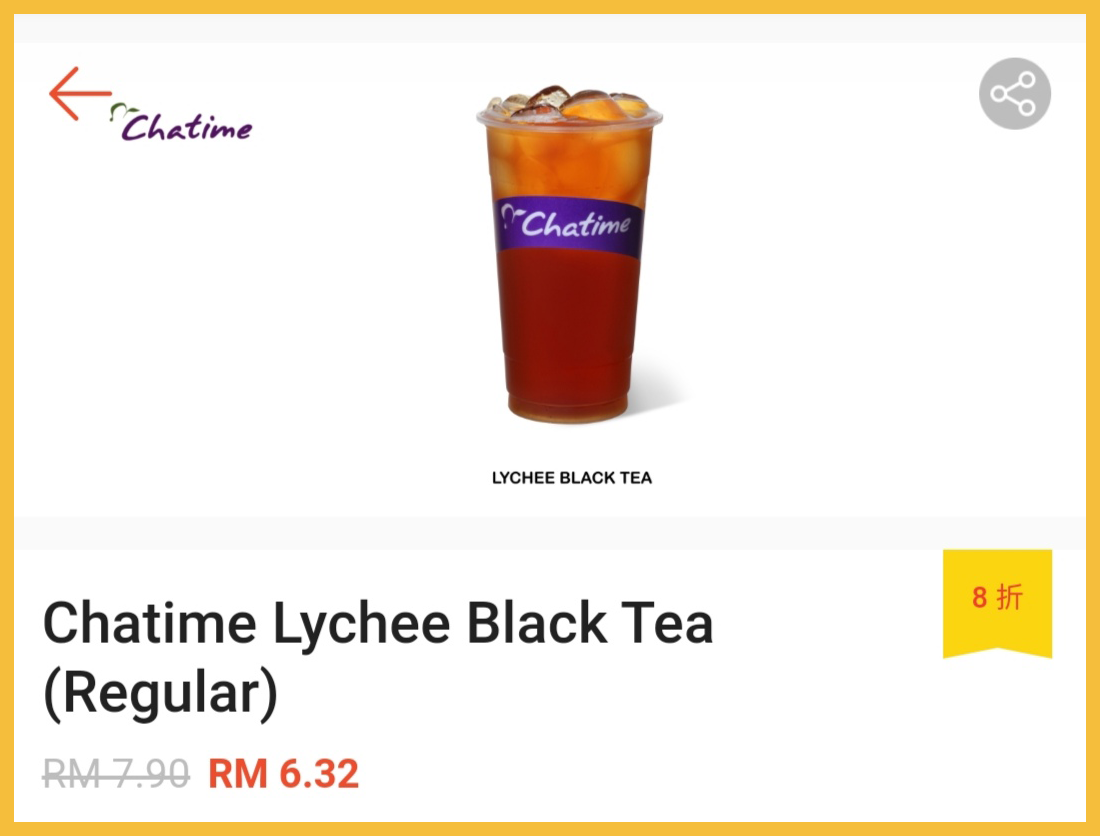 ▼④ Chatime Lychee Black Tea(Regular) —— 只需RM6.32