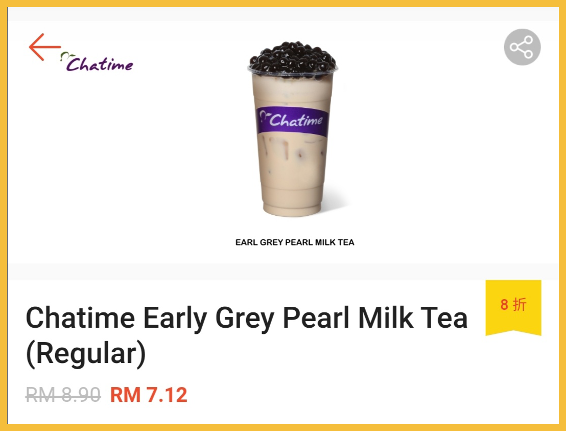 ▼⑤ Chatime Early Grey Pearl Milk Tea —— 只需RM7.12